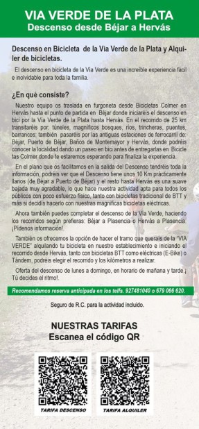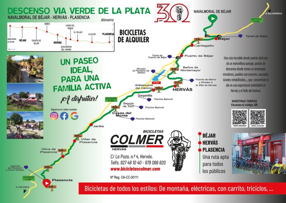 Uno de los tramos de esta Vía Verde acondicionada para su uso, es el que comunica Béjar, Hervás y Plasencia lo que supone 67 kilómetros de bellos parajes a las faldas de la sierra de Bejar y Hervas , el encanto que también atesora el Valle del Ambroz y el transitar por la dehesa extremeña.